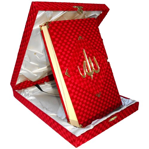 KIRMIZI KADİFE KURAN ORTA BOY 25X17 CM KUTUSU 30X23 CM